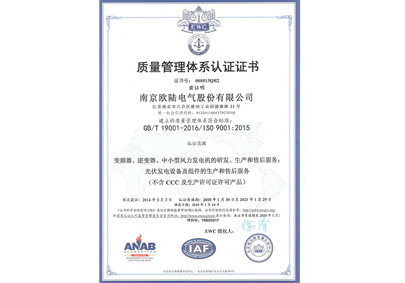 • 質量管理體系認證證書